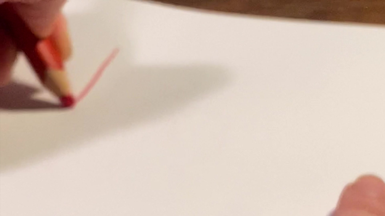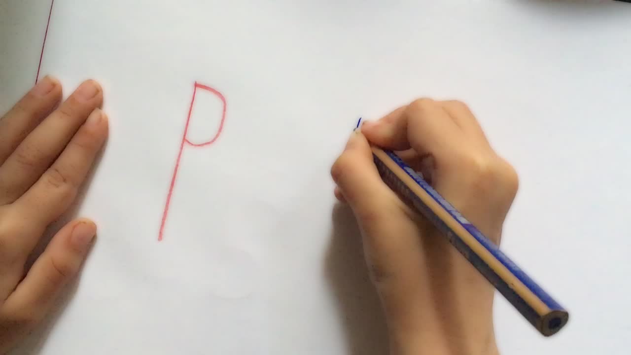Schreibanweisung im Film: Strich nach unten, Halbkreis oben (P, p).