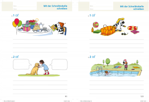 - Wenn ihr schon jetzt die Übungen zum freien Schreiben mit der Schreibtabelle vermisst: Die gibt es noch! Sie sind nun allerdings nicht mehr bei der Buchstabenerarbeitung zu finden, sondern gebündelt und auf zwei Blocks verteilt am Heftende. Dort könnt ihr sie individuell einsetzen.