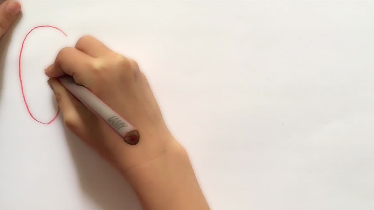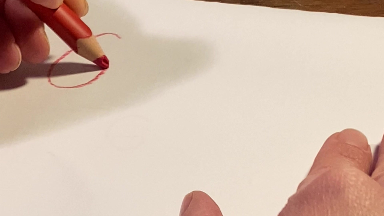 Schreibanweisung im Film: Großer Halbkreis, hoch, rein und runter (G). Kleiner Halbkreis, hoch, Strich nach unten, Schwung nach links (g).