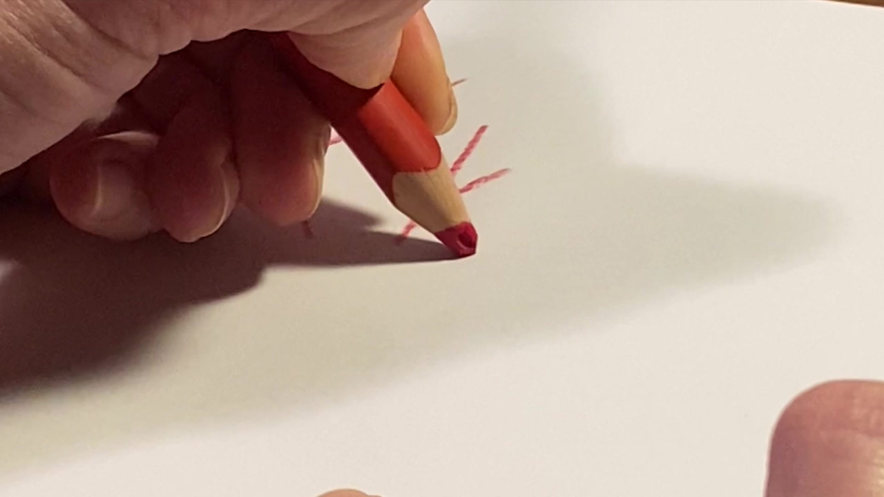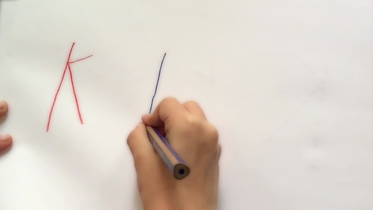 Schreibanweisung im Film: Langer Strich nach unten, schräg zur Mitte, schräg nach unten (K, k).