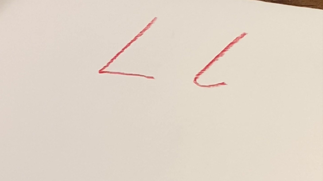 Schreibanweisung im Film: Strich nach unten, Balken nach rechts (L). Ab und kleiner Schwung nach rechts (l).