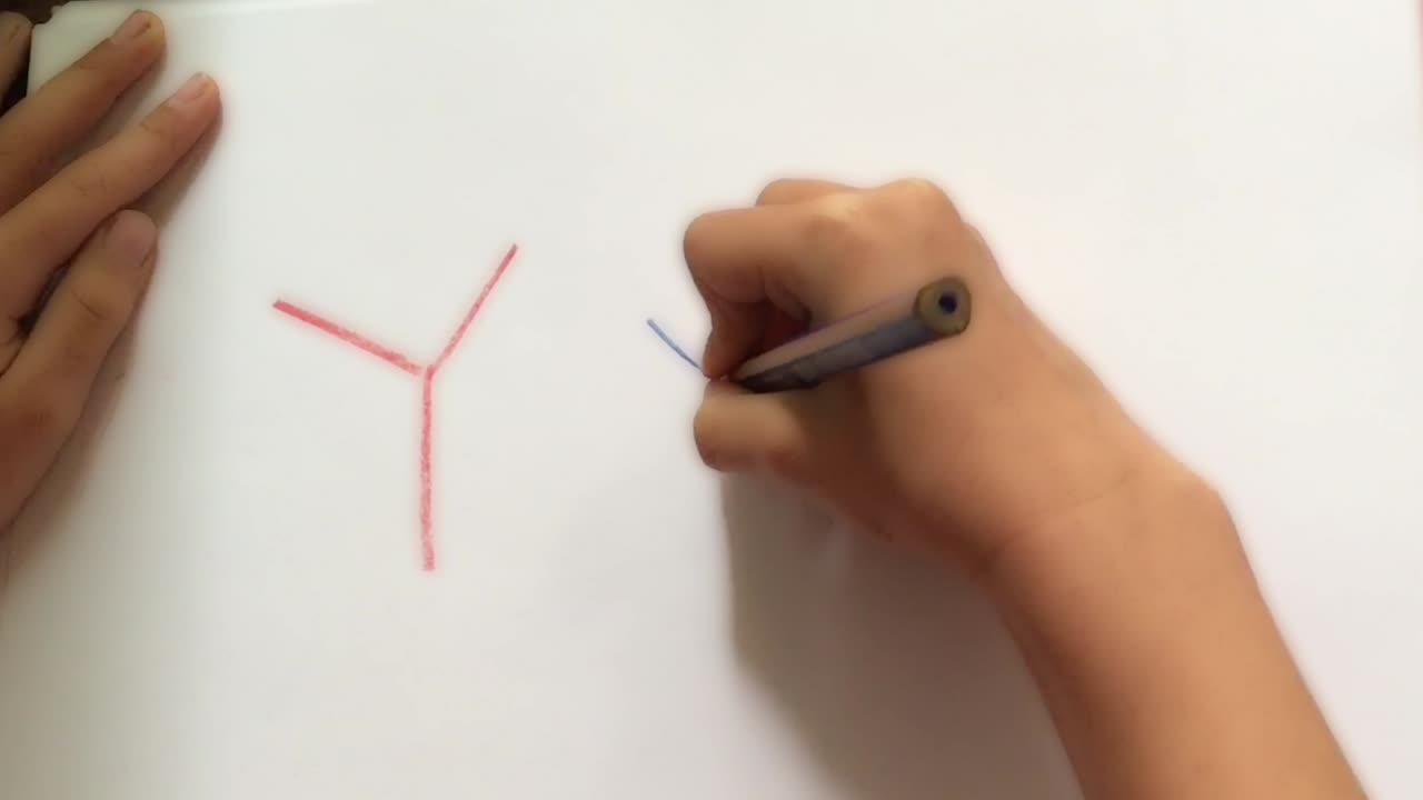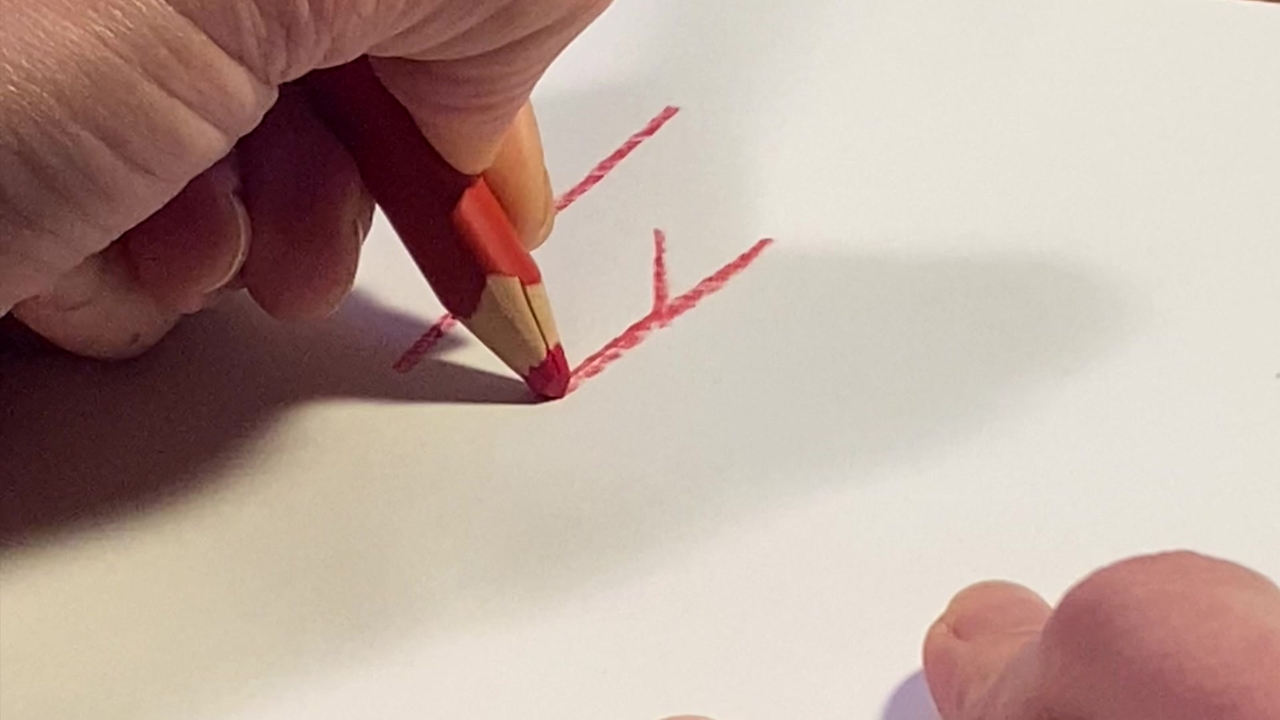 Schreibanweisung im Film: Schräg ab kurz, schräg ab kurz, Strich nach unten (Y). Schräg ab kurz, schräg ab lang (y).