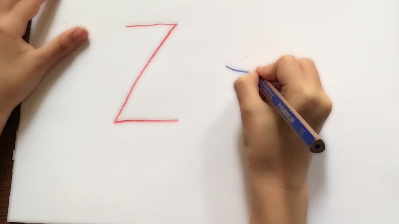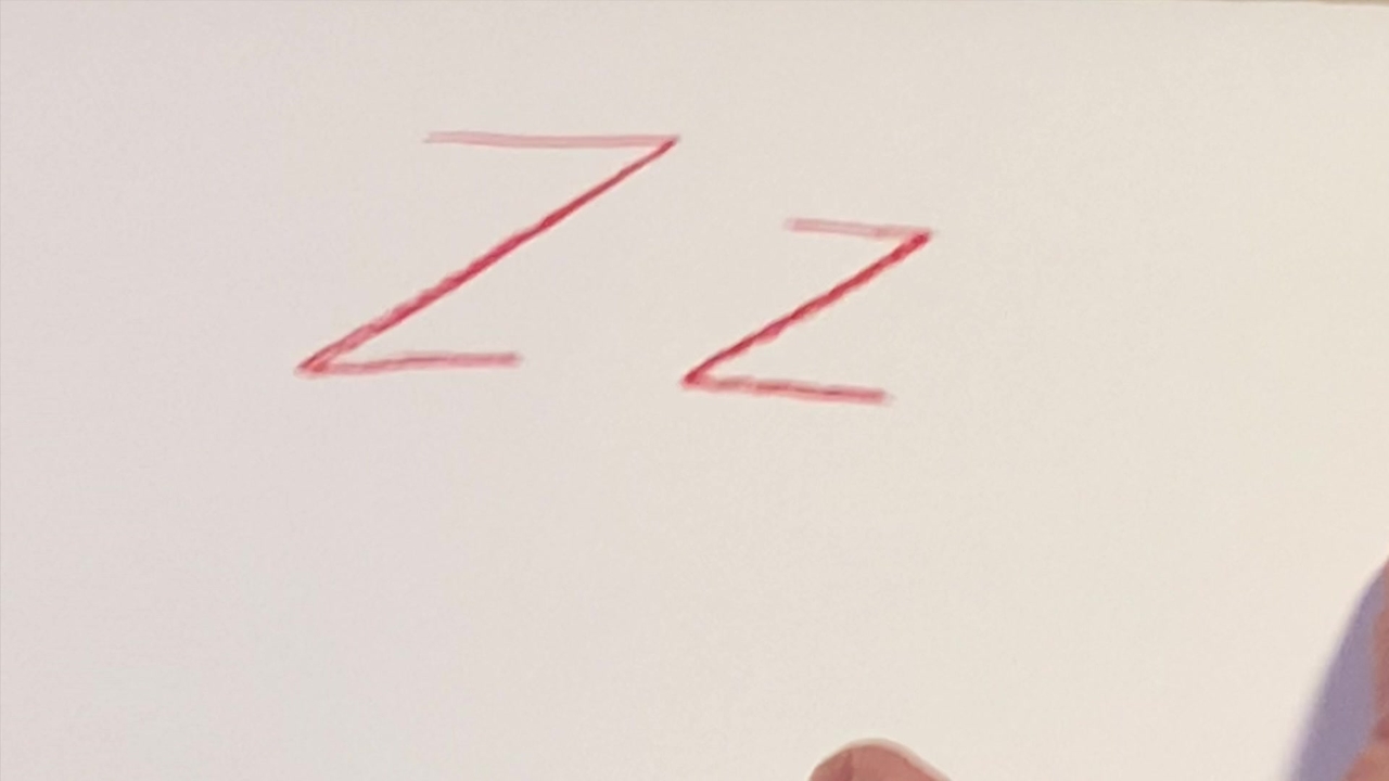 Schreibanweisung im Film: Balken oben, schräg ab, Balken unten (Z, z).