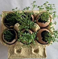 Man nehme eine leere Eierverpackung, dazu ein paar leere Eierschalen, ein bisschen Blumenerde und einige Samen Gartenkresse. Die leeren Eierschalen mit Erde und Samen füllen, jeden Tag etwas gießen und an einen warmen Ort mit viel Licht stellen, am besten an ein helles Fenster. Es muss darauf geachtet werden, die Erde immer leicht feucht zu halten, Staunässe unbedingt vermeiden. Die Gartenkresse keimt bei Zimmertemperatur nach nur 2 Tagen, also ideal als kurzfristige Osteridee.