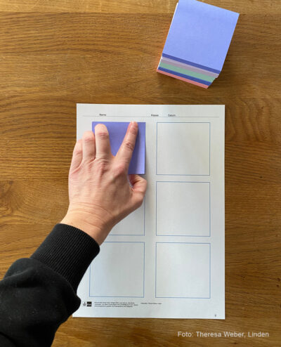 - Platziert dann eure Haftnotizen genau in den Quadraten.