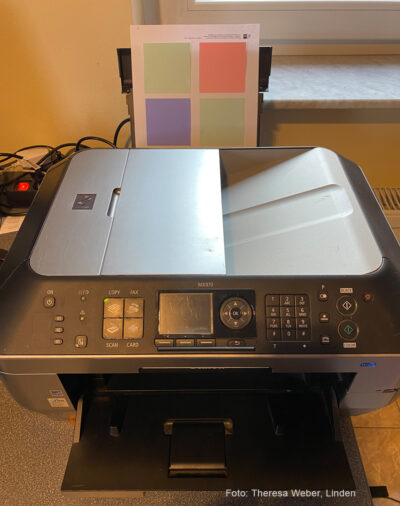 - Legt jetzt das Blatt mit den aufgeklebten Post-it’s wieder in den Drucker. Achtet hierbei darauf, dass die Klebungen der Notizzettel zum Papiereinzug eures Druckers zeigen. Am besten testet ihr vorab, welche Seite eures Papiers bedruckt wird.