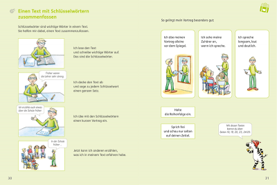 Tipp: Die Schrittfolge, wie das Zusammenfassen von Texten mit Hilfe von Schlüsselwörtern gelingt, finden die Kinder im ZEBRA Lesebuch 3 auf Seite 30/31.