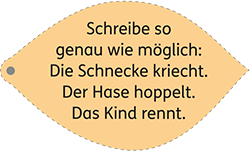 Rückseite: Schreibe so genau wie möglich: Die Schnecke kriecht. Der Hase hoppelt. Das Kind rennt.