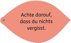 Rückseite: Achte darauf, dass du nichts vergisst.