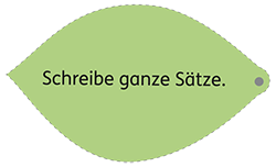 Dieses Blütenblatt erinnert die Kinder an das Formulieren ganzer Sätze und das Setzen des Punktes am Satzende.