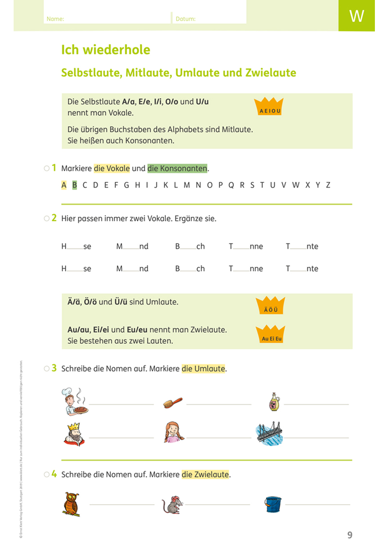 - Übungen zum genauen und sinnerfassenden Lesen sowie vielfältige Schreibanlässe,