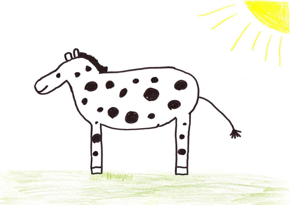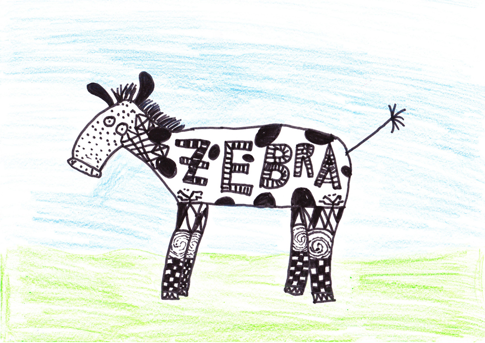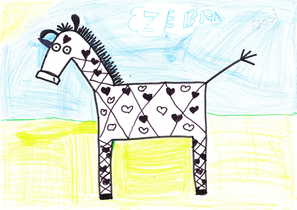 Zum Einstieg habe ich den Kindern die Frage gestellt, wie ein Zebra aussieht. Dabei bekamen die Schüler die Anweisung, so genau wie möglich zu beschreiben. Ein Kind durfte an die Tafel kommen und hat die Antworten der Kinder an der Tafel gemalt. Das habe ich drei Mal wiederholt und dann hatten wir drei Zebras an der Tafel: vier Beine, eine Mähne, einen Schwanz, einen Kopf und natürlich Streifen!