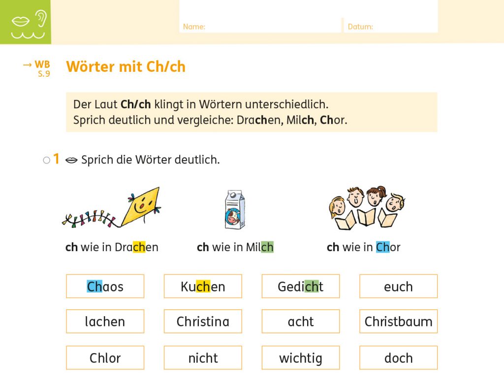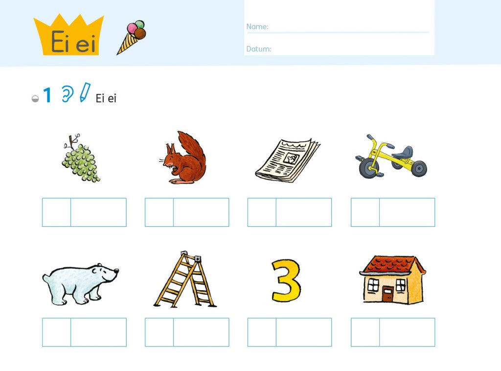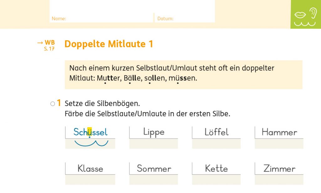 Im Buchstabenheft und Arbeitsheft Sprache finden sich dazu verschiedene Übungen.
