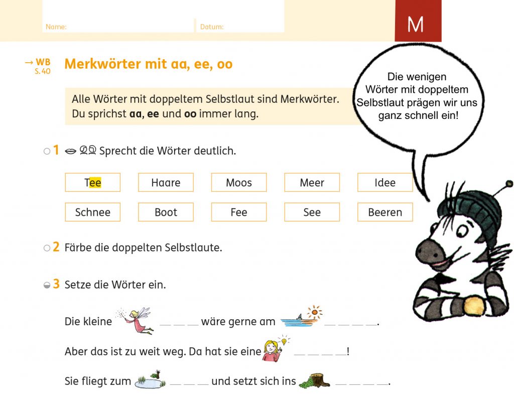 Der Aufbau von Kenntnissen orthographischer Regularitäten und der Erwerb von Strategien von Anfang an ist Zebra Franz und seinen Autoren wichtig. So setzt Zebra auf Nachdenkstrategien für die Herleitung der regelgeleiteten Schreibungen sowie Merk- und Gedächtnisstrategien für die Reproduktion von Merkschreibungen.